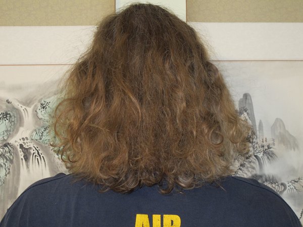 Most of you probably don't remember me but I used to be a regular here around four to five years ago (at least, it feels like it ;p ). At one time, I had pretty good hair - down to about mid back, until the wife took the shears and cut it off all in one snip ;o . It was to save the marriage since my wife was so irate about my hair :/ (she said it was either the hair or the marriage ~o~; ). Also around the same time, I was diagnosed with MPB, so my hair was looking pretty shoddy. I apologize to anyone from around then - I was in a bit sour about things losing my hair plus losing my hair and all ;o , but time does fly ;p . The doctor put me on Propecia which has luckily saved most of my hair plus we caught it pretty early, so that was another lucky factor ^_^ (I so dread thinking about looking like my dad/granddad/great-grandad/father-in-law, etc ;p plus Ive tried an experimental way of keeping my hair, too, which I wouldnt suggest but it is interesting ;o ~). After a few years of short hair, I got the courage to try growing it out again ;D . I'm not quite sure how long it's been now perhaps a year and a half since I started, but here it is as it is today :) . Unlike last time for much of the time, I've encountered little resistance from my family and my wife. My wife grumbles every so often and my mom is on me from time-to-time, but this time around I've been trying to do a good job of taking care my hair - trimming it every so often so that it looks good, putting in coconut oil (actually, my wife helps do it in exchange for a foot massage ;p ~), leaving it loose, etc. I've noticed as one gets older, hair does grow a bit slower and gets a bit grayer (naturally ;p heh~) but I do feel pretty darn good that my hair is the length that it is ^_^ . I think my wife is a little more supportive this time around also, since we've been married for so many years and she excepts me for who I am pretty much now - instead of trying to shape me in the way she wants totally wants me to be >o<* . I suppose it's only a matter of time before the hair has to get cut off again, but I'll see how far I can get before then and most of all, enjoy the ride along the way :D . Here's to all of you, my friends, and happy birthday MLHH :) ~