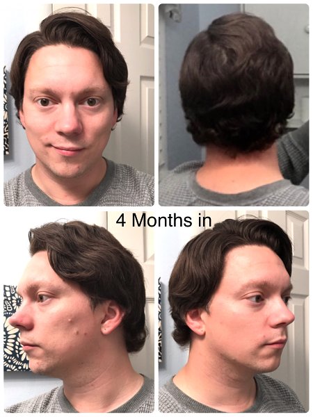 Good evening, gents. Im at the 4 month mark, and ao fr so good. Heres a little progress pic. Im definitely having an easier go of it this time around. Im also taking daily biotin, exercising a bit more regularly, and getting plenty of rest.