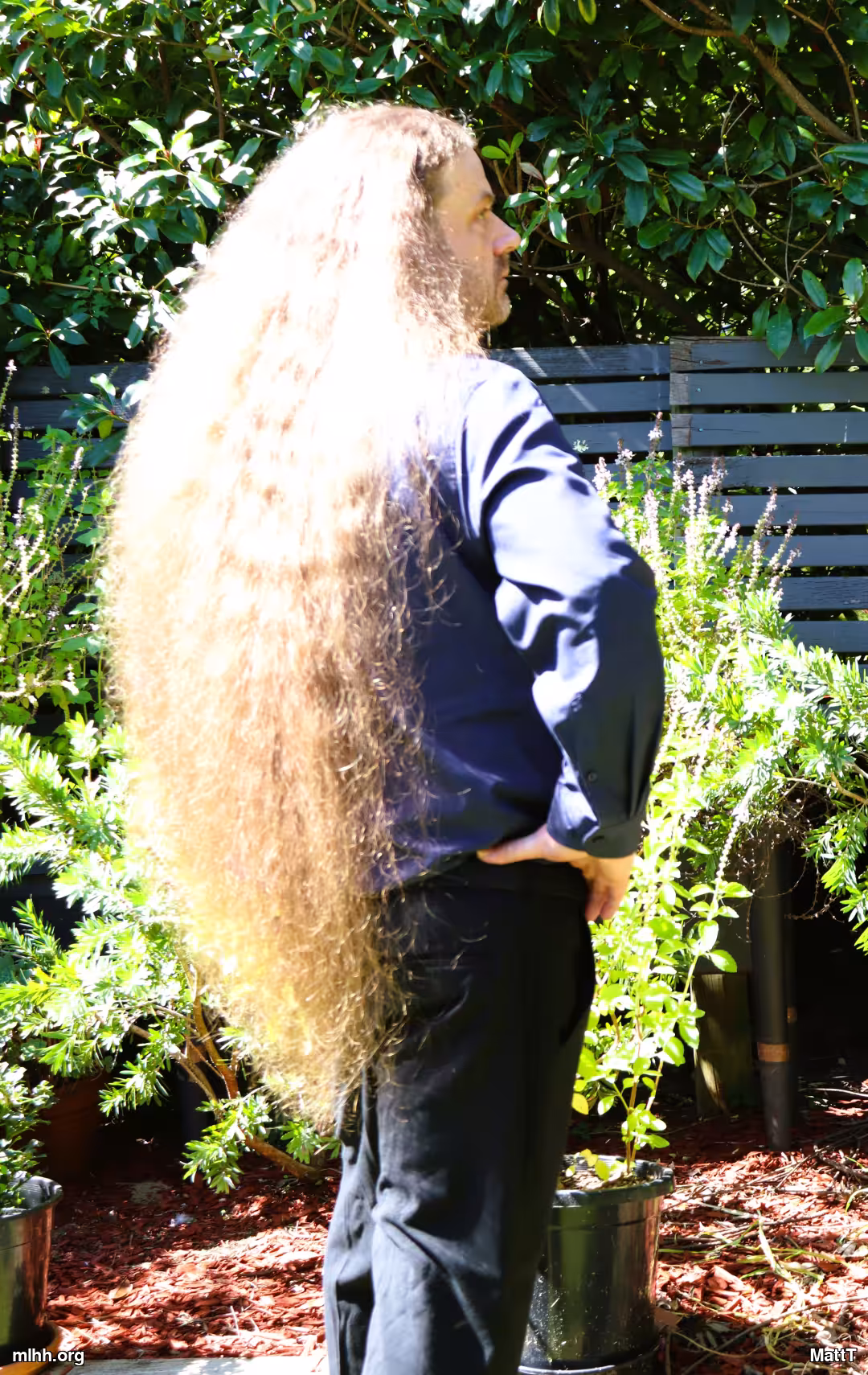I haven't trimmed in over 2 yrs just to see how much longer it will get. I just washed it so the ponytail is super gigantic... When I go out it's normally in a bun but sometimes I like to wear a pony tail out which I normally get positive remarks over. If I wear it loose it tends to get quite annoying, stuck in car doors, constantly having to swish it out of the way, sit on it etc and gets all tangled, as well as sometimes scaring the guys when I turn around and they realize I'm a big 50 something hairy guy and not whoever they thought they were looking at.. . anyway that's all part of the fun ha ha! Hope to see more posts soon from new and old!