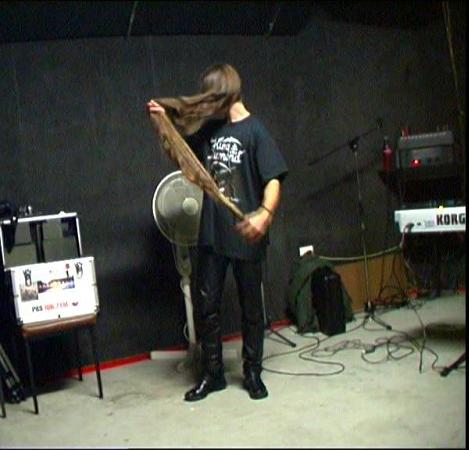 He wouldn't want to get his mane stuck in that fan there. Ouch!