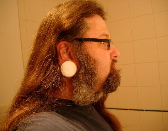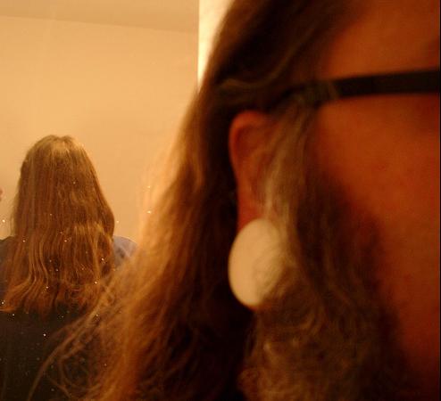 I was thinking how did he get something so big in his ear. 6 years is a long time though. What is the diametre of the plug and how often do you 'upgrade' to a bigger size? I have seen some of the natives who have ear lobes that are so loose and stretched they almost reach the ground and they put heavy metals on the ear lobes, crazy stuff.