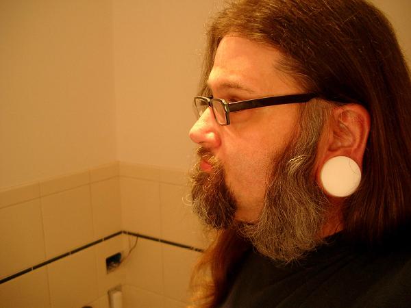Those are plugs in my ears. I've been stretching for about six years now, and the stretching process (if done right) takes a long time. There's no pain at all.