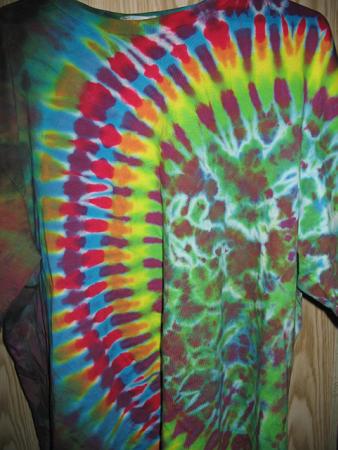All I can say is WOW you got good fast. That is by far the best one so far and you haven't even been doing Tie dying for that long. You really should take this up professionally as it is really outstanding.
