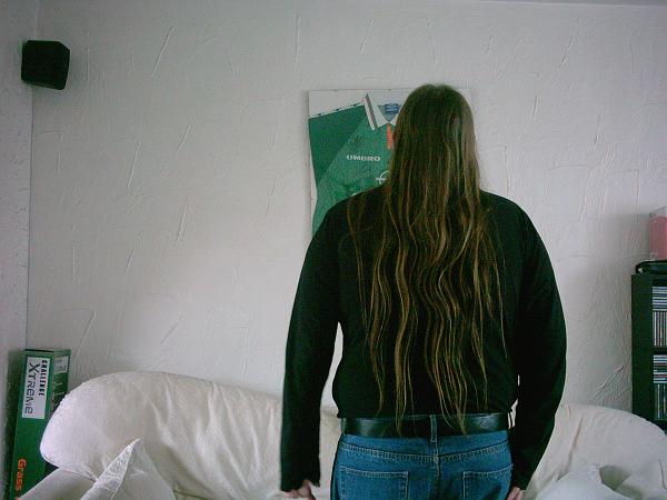 WOW, Luke!! Does your hair ever grow FAST!!! I don't actually know what the length was when you started growing; but when I started growing mine back after my Y2K devastating haircut, I started from what one might call a "typical guy's hair-length", --- and yet, my hair is just now reaching my belt (which means my hair grows a lot slower than yours)...