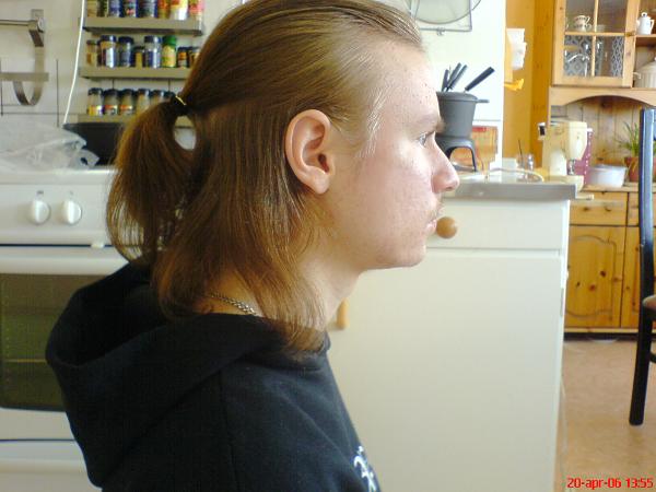 Nice, dude. Looking pretty good, and the way your is resting on your shoulders is cool. I like the black hair tie, too; I can't find any, which sucks.