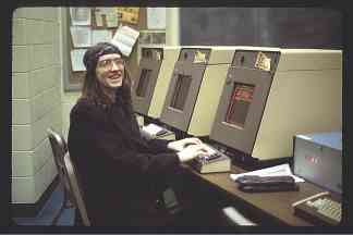 At U of I one could log on as "a" author mode or "s" student mode. They wanted us to log on as student mode unless we knew what we were doing, because author mode could get you in trouble. Eventually they issued passwords and the one-letter access modes were turned off to those who didn't have a password. How it all got started was we heard they had tied a university computer in with computers at several other universities and they wanted students to come down and test it all. The U of I terminals were all lined up like the ones in your photo there. They had a few dozen of them scattered around in different rooms. We had no idea this was the start of something that would later be called "the Internet".