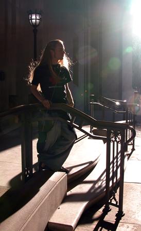 The bald person behind me is actually my dad...lol....me and my mom both have long hair, while he is the odd one out in the family