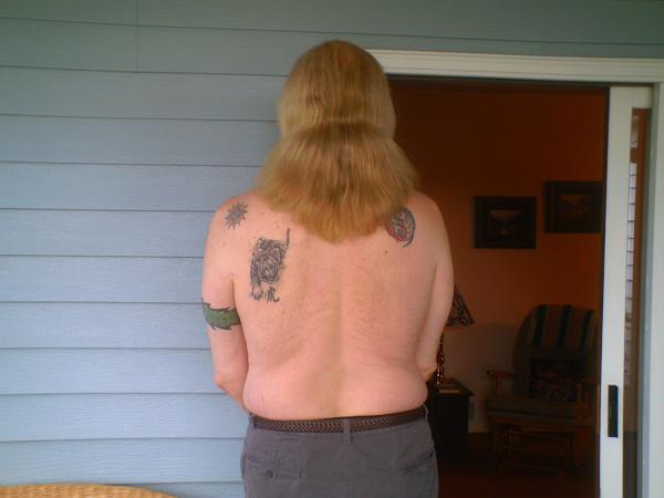Randy...good pictures...we have very similar hair...I keep mine "trimmed" at about your length. I have had long hair for over ten years but do not like it much longer than yours. Is your hair naturally curly? Great color too. Congratulations on the five year anniversary.