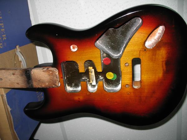That came out well. I was refinishing one of my guitars a few months back. Mine was an old Jackson. I was almost done with it, I had just finished applying the clear coat to it... but it wasnt coming out so well, so I just said to hell with it, and decided to work on my car instead.