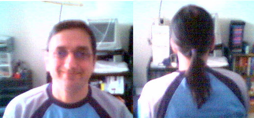 Here are a couple of pictures of my ponytail thought I will share them. Today I was doing some jobs around the house both inside and outside and it was a lot easier to work without my hair getting in the way and it felt great. It was also very windy outside and my hair stayed in the tail which was good for me, I do not wear a ponytail often yet. I have been growing for 19 months now. Pictures were taken quickly with my Webcam.