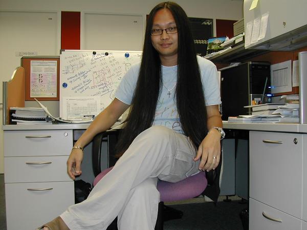 Hey man what kindof work do you do? Like right there in the picture. Are you in I.T. or what? And im guessing they certainly tolerate long hair in there which is great. i hope i could get into that kinda longhair-friendly workplace atmosphere like the one you're in sometime after my schooling days!