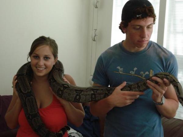 Here is a photo of a Burmese python taken in 1987, and yes, that is me. He weighed 80 pounds and belonged to a close friend.