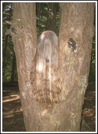 You hair seems to blend in so well with the natural colors of the tree bark. Amazing!