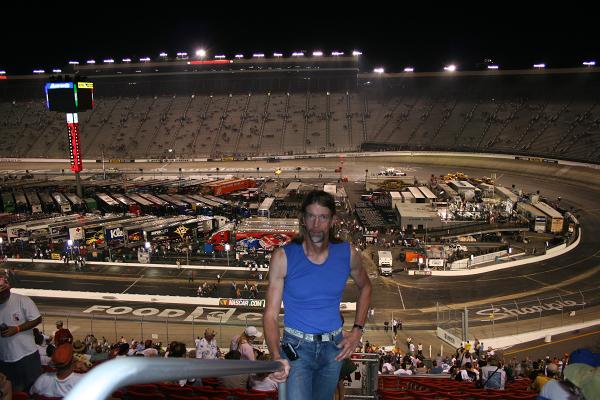 Well I'm back home from a great weekend at Bristol Motor Speedway and had a fun time.I traveled down with a relative so it was just the two of us since we are the diehard race fans I guess!LOL.Anyway we almost didn't quite make it due to a mishap on the interstate in VA.For those of you who are familiar with Interstate 81 it is a narrow two lane roadway thats packed with semi trailers and cars traveling quite fast leaving little distance between each other.Your lucky if you get four car lengths in front of you and to the rear.Anyway I was just north of Roanoke heading south in the left lane when someone ahead of cars I was behind stopped short for what ever reason. I was forced to make an evasive manouver to the left shoulder as otherwise I would have ran into the car in front of me.I missed that car but because there really is no real paved shoulder I hit the grass median at 70 mph!After that all I can say is that it was one hellava ride as I locked the brakes and cut the wheel to the right as the car skidded who knows how many hundreds of feet down an embankment towards a ditch between the north and south bound lanes.Fortunately the car came to a stop just feet from being wrecked in the ditch!It veered back away from the ditch towards the end of the slide because my wheels were cut right.Since the ground was hard due to lack of rain I was able to drive back up the embankment to the roadway.This whole incident could not have taken more than one minute to play out.I consider myself very lucky as that could have had much worse results.The other issue being my car was a rented luxury vehicle that I declined the extra coverage that would have prevented me from paying any damage I did to that car no matter how bad it was.So somebody was looking after me that day for sure!Just for the record my rental was a 2006 Buick Lacrosse.Other than that incident which actually made me feel like one of those race car drivers it was a fantastic weekend.I'm including a pic of me at the track that evening as it was a night race.Sorry about my rambling but I feel we really care about each other here and I just wanted to tell all you guys about what happened.Thanks for taking the time to read my post.Mark