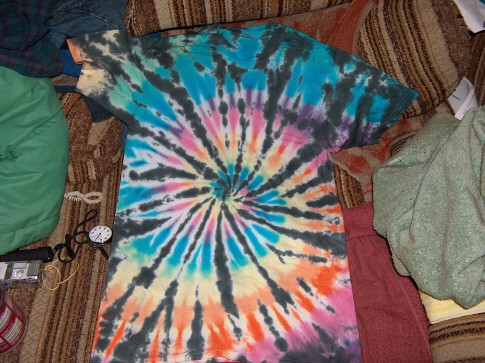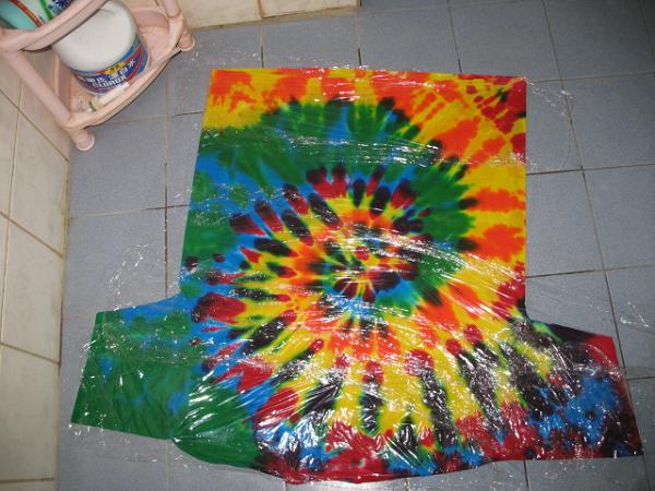 The yellow dye (old batch) was in powder form. There were a little bit (like 1/2 oz) left and it looks really caked from moisture, and just as I suspected, it went bad! How did you make that long black band in your T shirt? Did you make one big black pie when the shirts are tied on one side, then other colors on the other side? Man clearly shows im not too experienced in this....