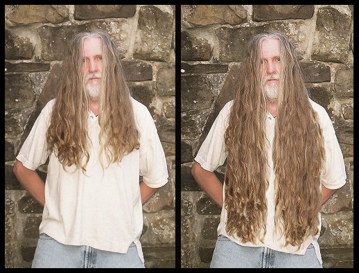 I made a copy of the original picture - placed them side by side and then used the "clone brush" feature of paint shop pro to lengthen the hair.