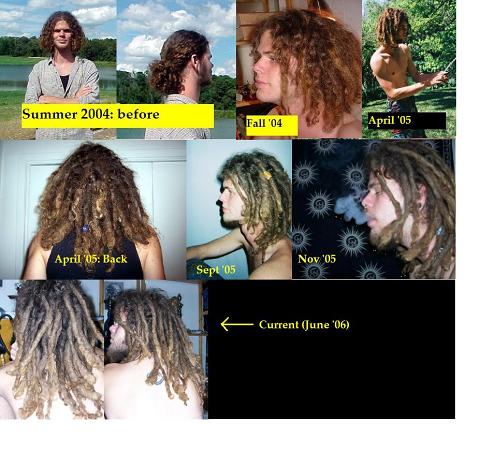 The first set I combed in in May of '04. A month later I combed them out, and starting in September of '04, I let them dread up naturally.