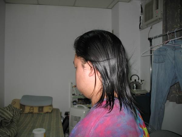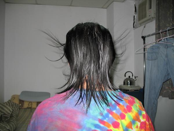 I took this picture while my hair is wet. The hair is flying cause i got a fan blowing right at my face... It almost felt as if the hair stopped growing or something! cause I saw another guy with longer hair than mines (like upper back) and he said he grew for a year too. And hes got wavy hair which should take longer to reach a length.