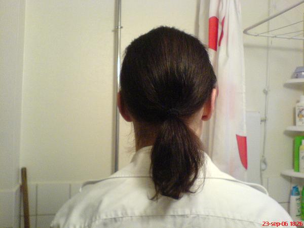 As you can see, my ponytail is not perfectly straight, nor is my hair too for that matter, i always have curls going on in the ends. I wonder why??