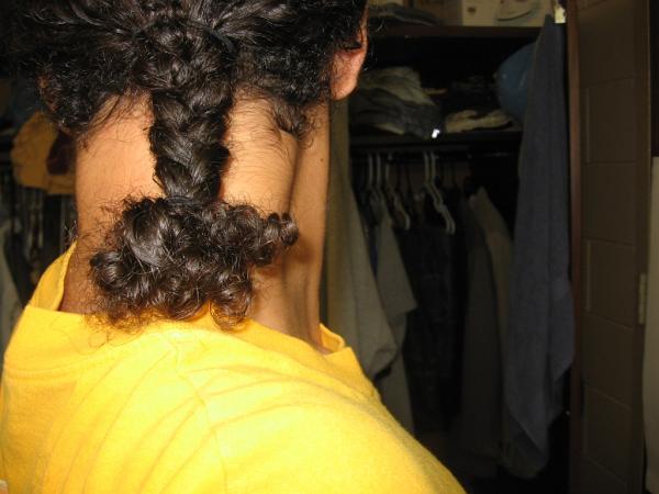 Anyway, here we go. This is another braid I did, a bit after (deep-)conditioning my hair with oil. The oil totally eliminates the frizz in my hair for a few hours, and I think it improved the braid a good deal.