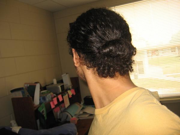Hi. Just dropping by for a while to share some random pictures of various hairstyles I've been messing around with. I've found that being able to style long hair differently, even if you don't wear it as such outside of your dorm room, is a wonderful benefit of having longer hair. It feels like a natural tendency to just play around with it and see what comes out (which reminds me oddly of multiple-choice questions, but that's another thing entirely).