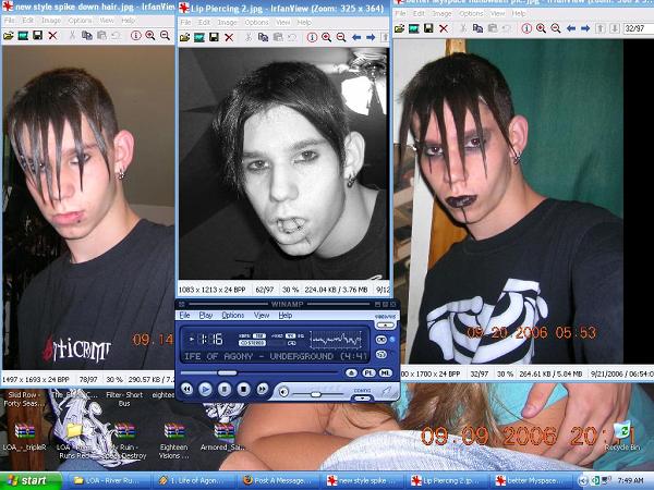 Hey everyone, So I decided to do something new with my bangs, a new style...I started using a spiking glue type gel, to get the spikes down the way I like them...I recently got a job at a grocery store, so i might have to cut them so I can look "clean cut and well groomed" haha! I also recently got my lip piercing that I have been wanting for a while now so I thought I would post a pic of that as well! hope you like the new pics and new style! :)