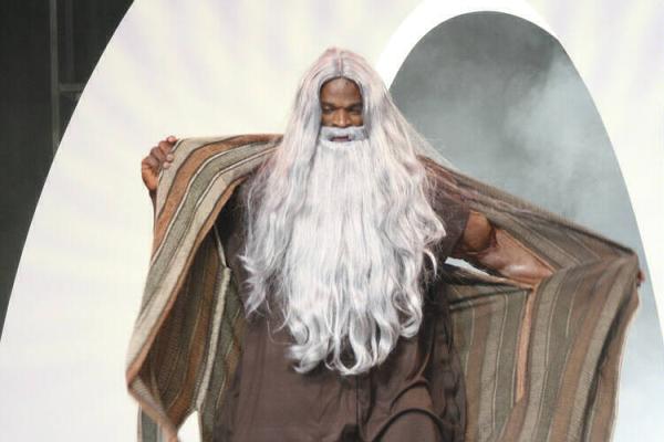 and why is he dressed like Moses in the first picture? lol