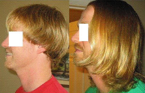 I've been posting here on and off for the last 18 months and this is the first picture I've posted of my hair. Here I am at October 1, 2005 (6 months) and October 1, 2006 (18 months). Please forgive the "eye patches"...paranoia issues. I seemed to have made decent progress in the last 2 months.