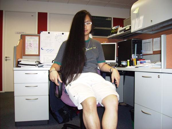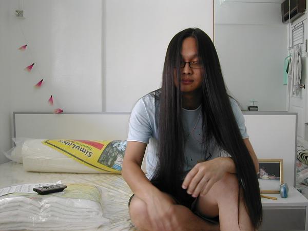 My current hair length is approx. 31" (80cm) from crown-to-end, and 34" (88cm) from hair line-to-end (the LHS method of measurement). My last "really short" haircut was on 10th Dec. 1999 (I'll always remember that day!!), and my ends were trimmed about 8" off in-between for a perming experiment by my wife. Got no hair goal at the moment, just wish to let it grow as long as I can "tolerate" it :).