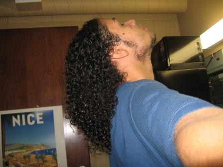 Anyhow, my hair's been as it usually is, although my bangs seem to be growing pretty fast. The rignlets at the back of my head seem to just be vegetating, though, lol. I'm hoping they'll do something noteworthy soon, because all they're doing is feeding my fear of reaching a short terminal length. Dreadlocks will solve this, but I don't want to go the dread route at so short a length; rather, I see it as an end-of-the-line alternative to keeping my hair growing longer. A lot of girls like to touch my hair and to see how it bounces back up when they pull on it (one girl had a frisson run through her upon doing this! It was sexy, lol), and although my hair isn't primarily for getting girls, I wouldn't want it to be a hindrance to that end. Not that girls don't dig dreads, but I don't know if they'd dig them on me.
