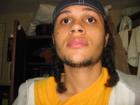 Thanks, man. I was just concerned about the picture's quality - I resized them a lot so they wouldn't take long to load, but their quality got pretty downgraded in the process. The originals looked a lot cleaner. And for the braids, well, for one thing, they're very difficult with dry hair. Try dampening your hair and perhaps using some gel, too, but not too much. Then, just separate them the hair to be braided into three sections (clumps for me, lol), and put the one on the left/right over the middle, then the one on the other side over the one you just put over the middle one, and so forth. It'll take a couple tries, but it's easy once you get it; it's just my curls that make it hard to do, lol.