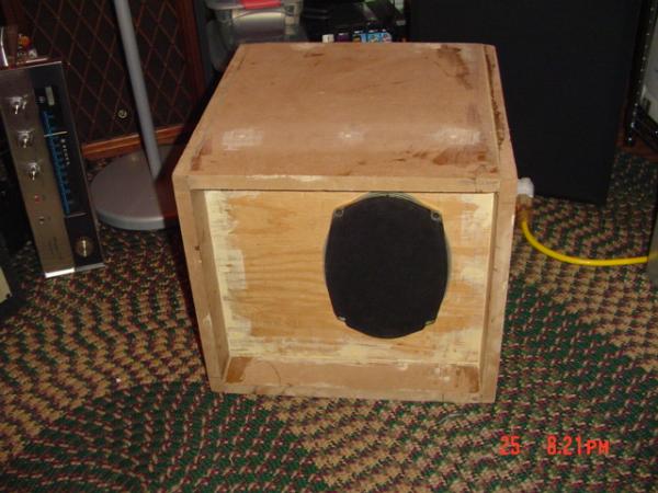 I thought I would share a pic of my current project I am working on. I had a couple of Delco 6x9 drivers laying around and decided to build cabinets for them. So far I have one built and the other just needs the front driver board cut. I am waiting for the glue to dry. I plan to finish these with a charcol colored speaker carpet.