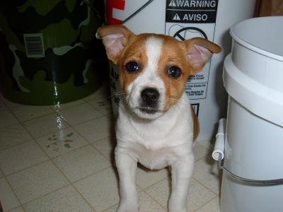 This is my puppy, Rover (yes, that is his name!). This was the only time I could get him to hold still for 2 seconds. We think he's part Chihuahua and part Pappillon (sp?). All I know is that he can fly!