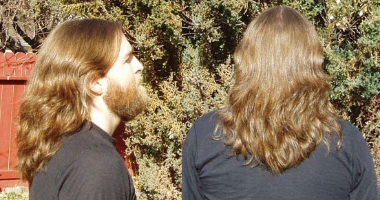 GREAT-looking hair, man!! Nice length, too, --- in fact, I remember when my hair got to about the same length as yours currently is, I remember liking that particular length for alot of reasons... one being that I could wear it in a variety of ways: 1) a half-tail (tying the bangs back); 2) a short ponytail (my long ponytail on me now tends to cause a lot of snarls & snags in my hair, unless I use multiple hair-ties); 3) loose, but with a bandana; or, 4) even completely loose! If I ever decide to cut my hair shorter than it currently is, I'd cut it back to about your length, or maybe *slightly* longer, --- at the length my hair is now, I always feel like I have to braid, bun, or use several hair ties down the length of the tail before stepping outdoors!