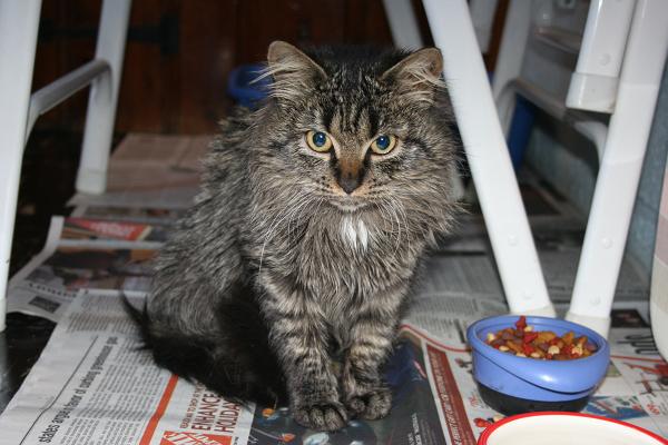 Hi hope all is well with everyone.Last week while working on a jobsite I noticed this kitty milling around hanging by anyone who would pay attention to it.I was at this site off and on for three days and found the cat was still there each day and was obviously a stray.Well it wasn't too bad weatherwise last week as it was very mild and no rain but on Saturday the weather got much colder after a front went through with a lot of rain and all.Well I decided late Saturday to go back to this site and if the kitty was still there I would rescue it.When I arrived that night the poor kitty was hunched up by the front door to this building that was closed for the day.With food in hand and a vacant cat carrier I fed and scooped up kitty and took it home.Well kitty is very happy with a real home but needs a cool name which is where you guys come in.Any suggestions as I attached a pic of kitty.I'm not great at naming pets but I'm sure someone is creative out there.Anyway thanks for reading my story as I await a new name for a great longhaired kitty!Mark