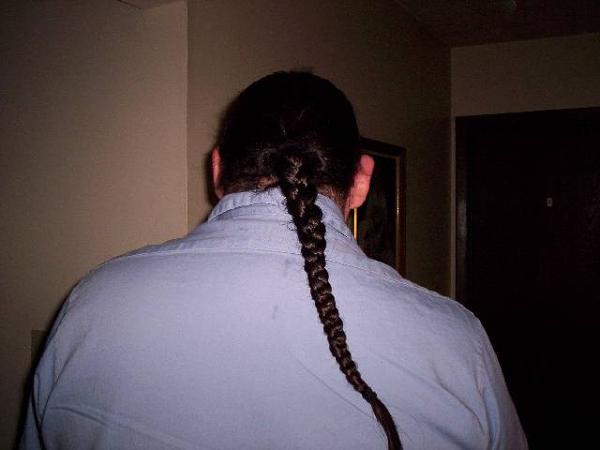 My hair's been this long for a few years now but only recently had I tried to braid it myself. I got to liking it braided after my girlfriend did it for me one night. It stays braided all day at work and when sleeping, much more managable than a ponytail. I found using a gel helps me braid it a lot better.