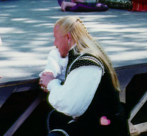 Well, this isn't my best pic, but here's one of me wearing my wedding outfit (that's a black velvet tail coat and an ivory "shirt" with lace ruffles down the front and on the cuffs (the "shirt" was an altered design from a pattern for a women's blouse my wife and I found in a pattern book while looking for suitable Victorian-style designs to use to make my outfit. We couldn't find any lacey shirts for men, so we ripped off a feminine pattern).