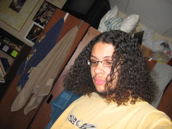 Anyway...here are a bunch of random pics of me. My bangs are like chin-length when curly and go to nearly my nipples when stretched.