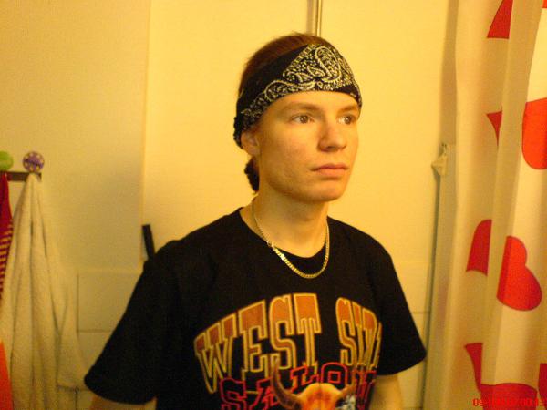 Hello again! I just pulled back my hair in a ponytail and tied a bandana around and i thought it looked kinda cool actually, this is also a good way too keep the hair away from my face when i'm doing work or when it's windy outside.
