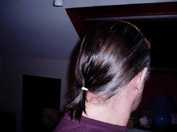 I couldn't resist putting up a pic of my first ponytail - okay so its a bit feeble with a long way to go yet but all the same I'm feeling good. It will never be all that thick because my hair is very fine anyway and it is thinner than it was but the rate of loss is slow Ive decided and I am just going to enjoy what I have for as long as I can and not worry.