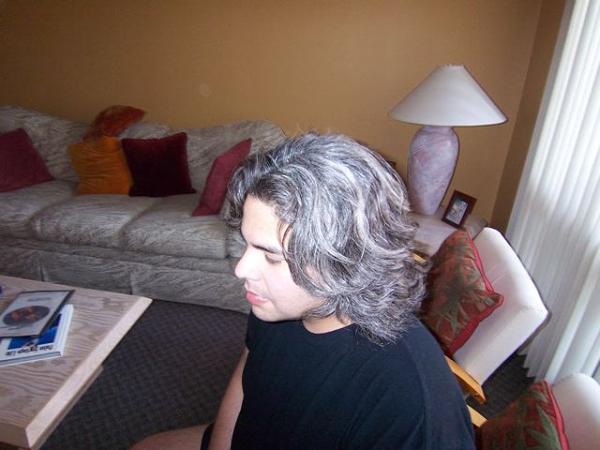 I have to agree with João... your hair is going to look awesome with the silver in it. It's so thick, too! Keep it growing. =)