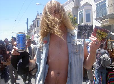 I was just going through my iphoto library, and had forggotten all about these pics I had taken 3 years ago, at San Francisco's annual Haight Street Fair. I went with Bill & Larry, and a few other local longhairs. For some unknown reason, I was unusually bold that day, walking right up to taotal strangers and saying a sentence like, "I'm a tourist taking pictures of longhairs today, --- would you mind if I took your picture?" I don't remember one single time that day that the guys I asked didn't smile & agree, and then pose for the shot, --- well, maybe htere was one time, when someone was in a hurry & refused; but that's it!
