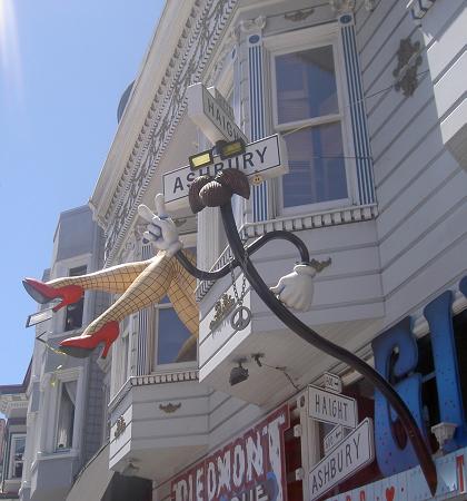 Here's the intersection of Haight and Ashbury Streets, --- the center of where all "the action" of the psychadelic '60s took place in San Francisco. The Haight-Ashbury area still maintains a lot of that flavor, --- although many hardcore hippies are annoyed that Haight St. has become more "scrubbed & pollished" over the years.
