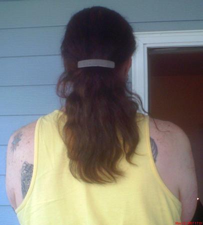 The henna turned the hair on top of my head bright orange and didn't change the color in back at all. So I made a bee-line to the drug store (wearing a baseball cap, of course!) for some color remover and regular hair dye in case I needed it.