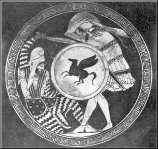 Yes, Bragi, many a Greek (such as the e.g. you posted with the tunic-wearing, helmeted, long-coiffed soldier wielding sword and Pegasus-emblazoned shield about to vanquish his semi-reclining PANTS-WEARING and Phrygian-capped foe . . . a Persian per chance?) indeed did cultivate their tresses, and, by the time of the Hellenes, most men WERE, in fact, longhaired. Their cultural aesthetic being positively androgynous (hello, Otaku!), as witness many of their statues.