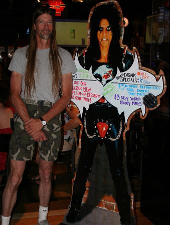 I never knew Alice Cooper had a restaurant, that is pretty cool, was it covered with rock memorabilia and guitars? This picture was pretty funny, you definitely have better hair than Alice, his is kind of flat somehow ;)
