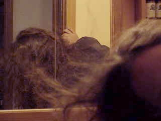 This pic was taken the morning AFTER I had done a really awesome "tornado"; but, since I was on my way over to Bill & Larry's house that morning, I thought it would be fun to see if I could re-group the "tornado", so I could show Bill essentially what it looks like, --- had my hair been freshly-washed that very day of the pic, it would have looked even better (and been even more "destructive" - lol)!!