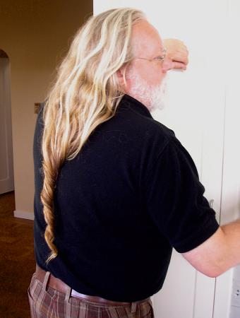 I don't know if I exactly fall into the category of, "super longhair"; but, in any case, this is the longest my hair has ever been, --- which has taken me 7 years to get to this point (starting at a "typical men's short style", --- where the bangs are just above the eyebrows, the hair just barely touching the tops of my ears, and cut close in back at the nape of the neck)...