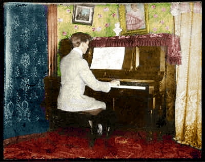 The photo you see here was my Grandfather,(Howard Penfield, 1889-1929) who I never knew which I colourized as best as I could from an old waterstained and almost invisable faded circa 1915 Sepia Photo. He was a concert Pianist and died at the age of 39 in my fathers arms of a sudden heart attack. This photo and one other are all that I have of my Grandfather who was from all I have heard was an amazing Pianist.