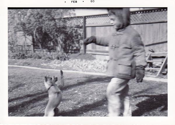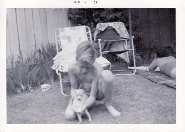 I'm glad you like my picture of me playing with Bambi as a little boy. Here is another one, shortly after we got Bambi as a new puppy. I think this was me, one month before my 6th birthday, in 1959, who is playing with him.